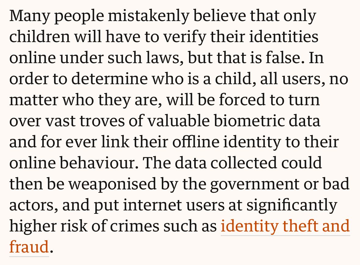 1. Lots of websites will geoblock instead of implementing this, because it’s too expensive. So even adults might lose access.
