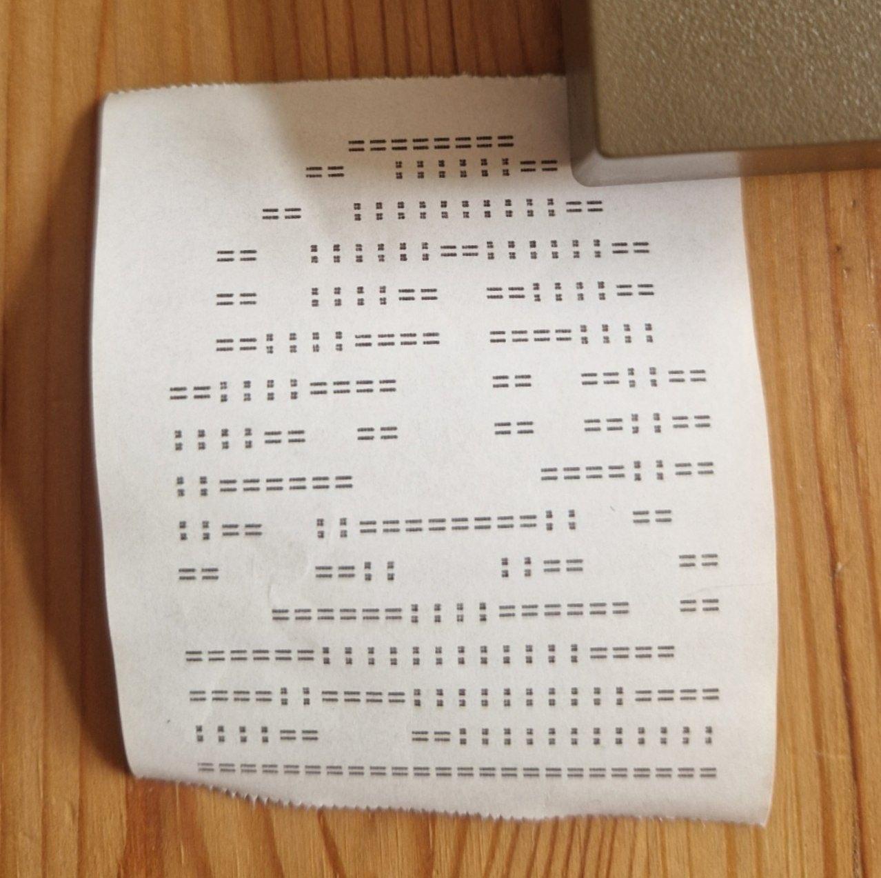 If you're wondering why I needed a printer for this computer: well, first, it's cool, and second, the computer can record the programs to a tape without this device, but can't load them. I tried to build my own version of the cassette tape interface for it from scraps a couple of weeks ago, but it didn't work for some reason. Probably the signal was too quiet.