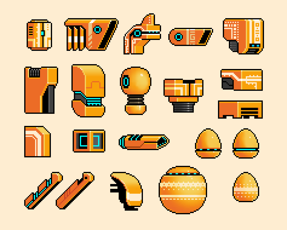 I didn't paint any eggs this week. Instead, I brainstormed some new robot parts for Pixel Robot Creator and decorated some of them with patterns. I'll continue working on these and making more assets later this year.