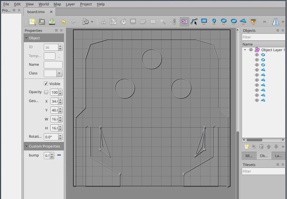 Objects can have arbitrary shapes. While we could use sspr to draw them, we would have to fit everything on a 128x128 spritesheet (without compression). So I'm testing filling the polygons in using electricgryphon's trifill function (https://www.lexaloffle.com/bbs/?uid=10844). #pico8 #gamedev